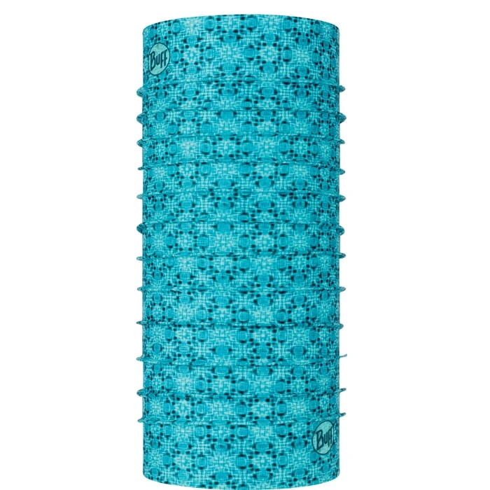 Buff CoolNet UV neck warmer in balmor pool features Buff CoolNet UV. Also features a all over print and seamless design as well as UPF 50+ and versatile usage. Branding includes a Buff printed logo. Made with moisture wicking fabric – recycled fabric – stretch material. Made from 95% recycled polyester and 5% elastane and is 53cm high x 22.5cm wide.