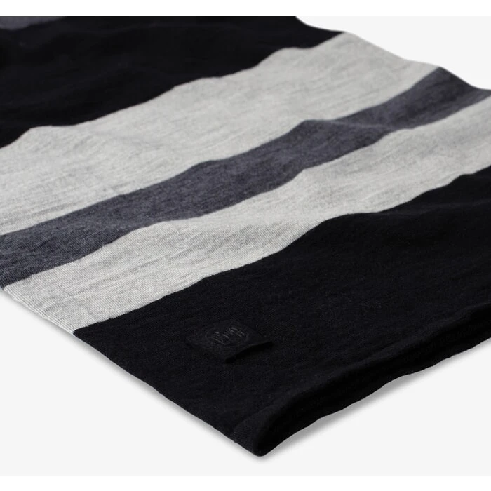 Buff Merino Move neck warmer in graphite features a all over print and seamless design as well as UPF 50+ and versatile usage. Branding includes a Buff faux leather label. Made with natural fabric – odour resistant material. Made from 91% wool – 8% polyamide and 1% elastane.