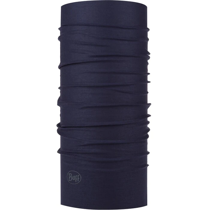 Buff New Original neck warmer in night blue features a seamless design and UPF 50+ as well as versatile usage. Branding includes a Buff printed logo. Made with moisture wicking fabric – recycled fabric – stretch material. Made from 95% recycled polyester and 5% elastane and is 53cm high x 22.5cm wide.
