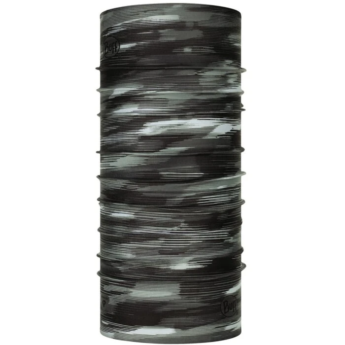 Buff ThermoNet neck warmer in osh grey features Buff ThermoNet. Also features a all over print and seamless design as well as UPF 50+ and versatile usage. Branding includes a Buff printed logo. Made with moisture wicking fabric – recycled fabric – stretch material – primaloft. Made from 58% recycled polyester – 38% polyester and 4% elastane and is 53cm high x 22.5cm wide.