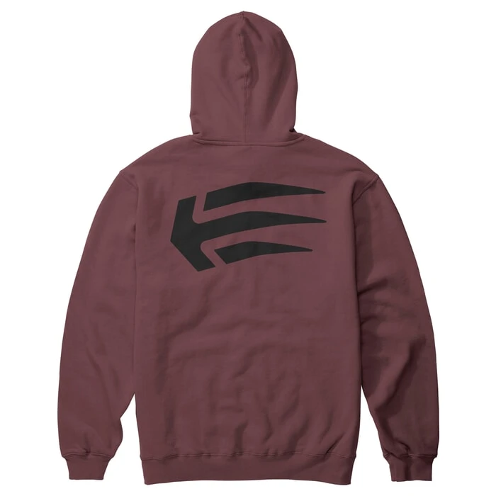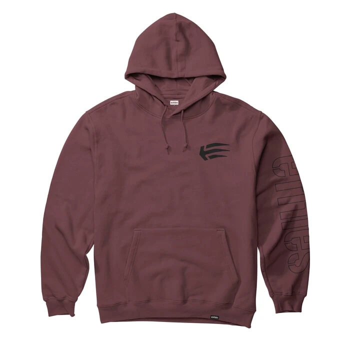 Etnies Joslin regular fit pullover hoody in maroon features a adjustable drawstring hood and chest print as well as kangaroo pouch and sleeve print. Branding includes a Etnies logo chest print and Etnies woven label. Made from 80% cotton and 20% polyester.