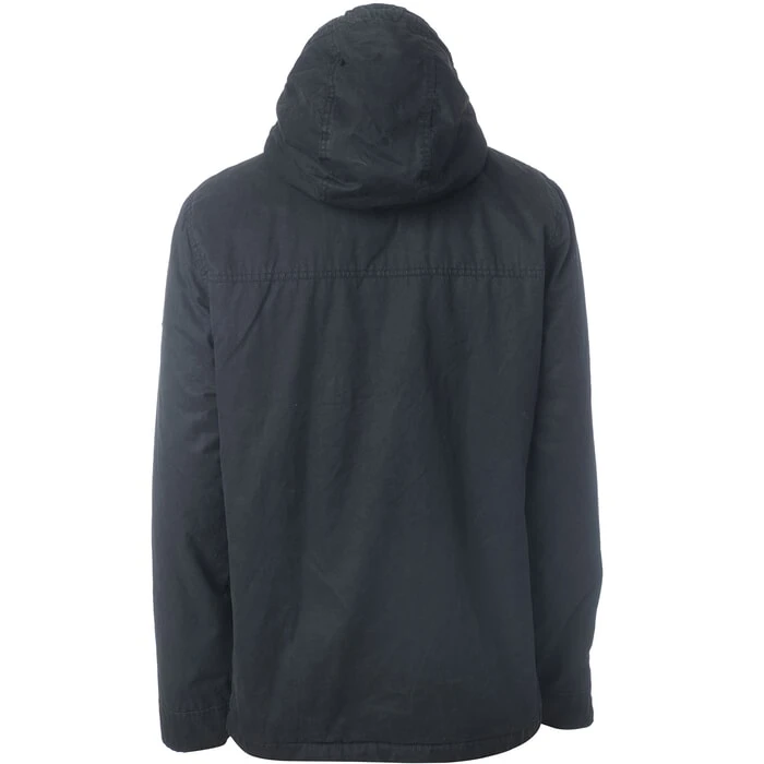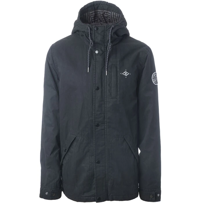 The luxurious and practical Guru jacket from Rip Curl. Cotton poly twill hooded jacket – with water repellent treatment – with brushed tricot linig – zipped chest pocket – front flap with snaps and chest print.