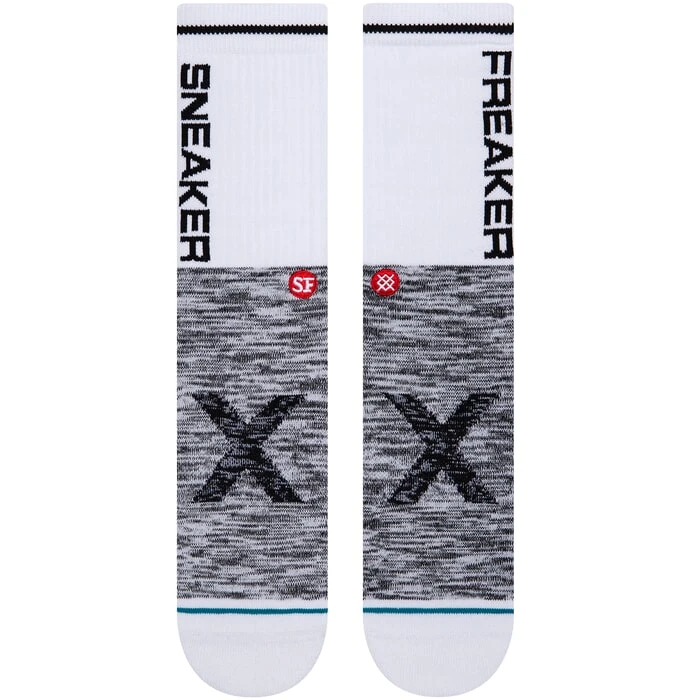 The Freaker socks have a classic crew height – engineered arch support and medium cushioning to offer all day comfort and support perfect for day to day. Sneaker Freaker magazine is a staple for sneakerheads – bringing news of the latest footwear drops and news to the masses. The Stance x Sneaker Freaker socks feature a grey stripe pattern at the lower half and Sneaker Freaker logo at the upper for some unforgettable branding. Finished with a seamless toe closure and deep heel pocket for an irritation free fit. Featuring Infiknit technology which ensures the fabric will never rip or tear.