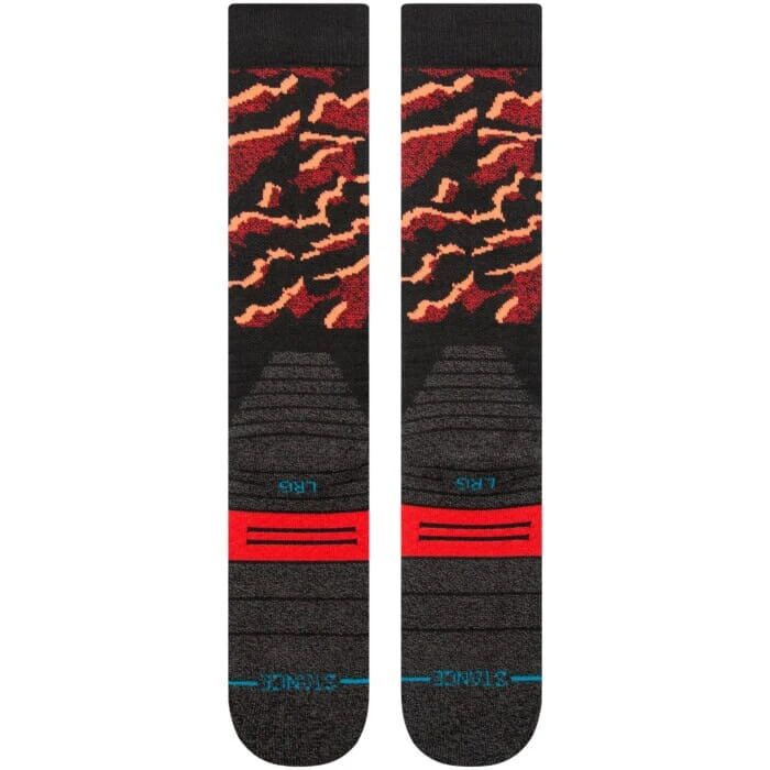 Stance Pelter snow socks in black features Stance FreshTek and Infiknit. Also features a arch support and boot protection as well as channelled air cushioning – medium cushioning – performance cushioning and performance mesh. Branding includes a Stance embroidered logo. Made with moisture wicking fabric. Made from 39% nylon – 31% polyester – 28% merino wool and 2% elastane.