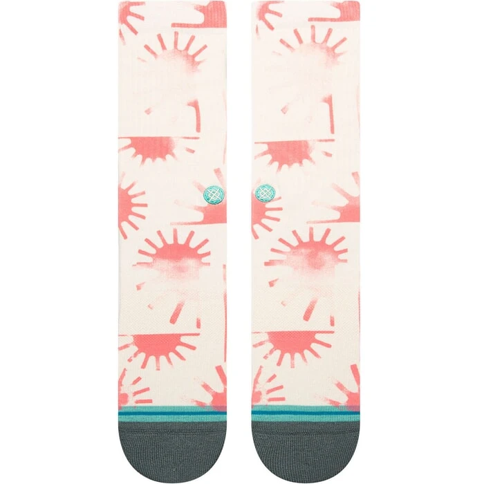 Stance Raydiant crew socks in coral features Stance Infiknit. Also features a medium cushioning. Branding includes a Stance embroidered logo. Made from 69% cotton – 17% polyester – 11% nylon and 3% elastane.