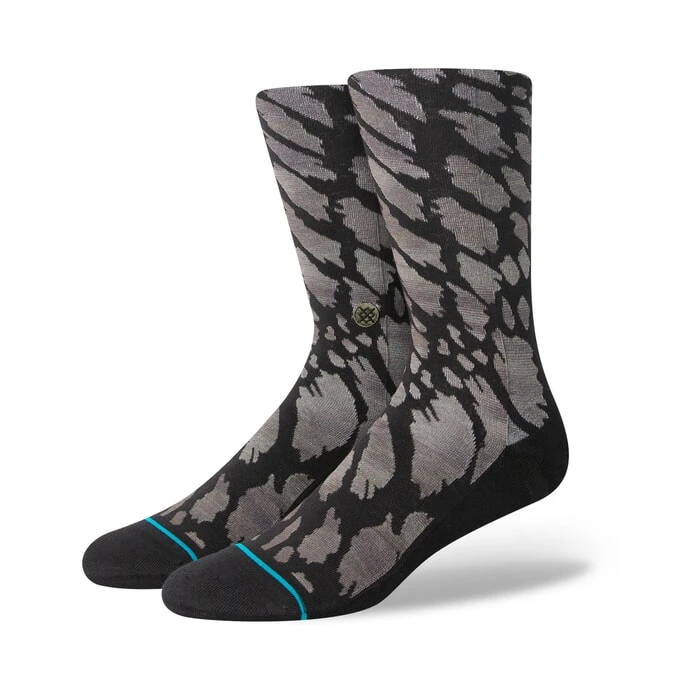 Stance Reptilious crew socks in camo features a arch support and light cushioning as well as seamless toe closure. Branding includes a Stance embroidered logo. Made from 47% cotton – 45% polyester – 5% nylon and 3% elastane.