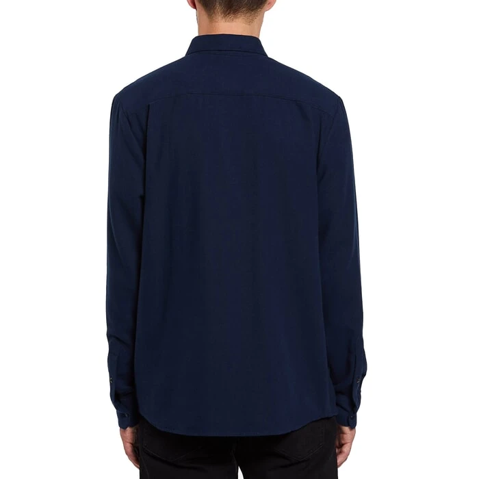 The Caden Solid shirt has a soft cotton-poly blend fabric with a sleek modern fit and a chest pocket housing a Volcom woven patch on the chest for some subtle branding.