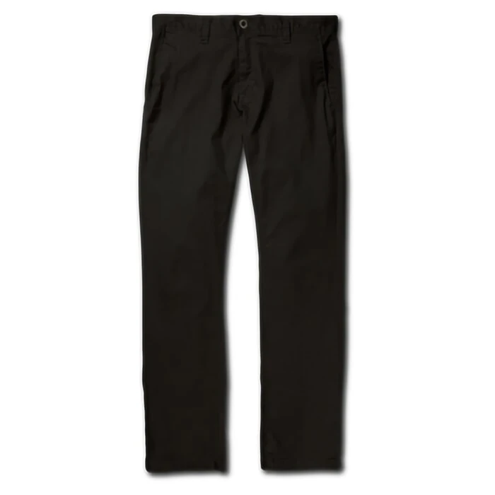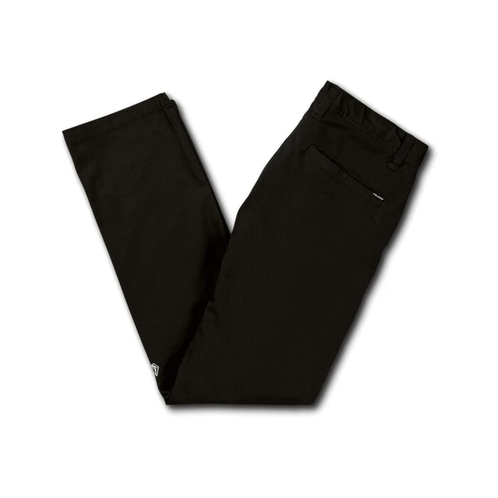 Volcom Frickin Modern Stretch modern fit chino trousers in black features 4 pockets and asymmetric yoke. Branding includes a Volcom embroidered logo and Volcom woven label. Made from 59% cotton – 39% recycled polyester and 2% elastane.