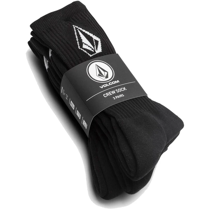 Volcom Full Stone 3 Pack crew socks in black . Made from 53% cotton – 43% polyester – 4% elastane.
