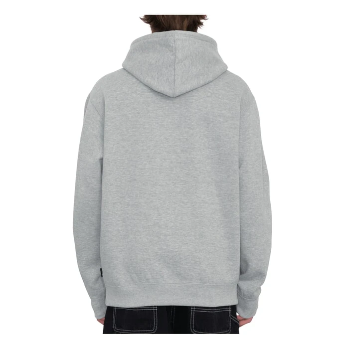 Volcom Single Stone regular fit pullover hoody in heather grey features a adjustable drawstring hood and kangaroo pouch. Branding includes a Volcom embroidered logo and Volcom metal trim as well as Volcom woven label. Made with recycled fabric. Made from 80% cotton – 15% recycled polyester and 5% polyester.