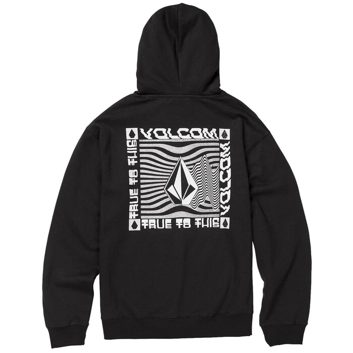 Volcom Strikehood regular fit pullover hoody in black features a adjustable drawstring hood and pouch pocket as well as rear print. Branding includes a Volcom logo chest print and Volcom woven label. Made from 60% cotton and 40% polyester.
